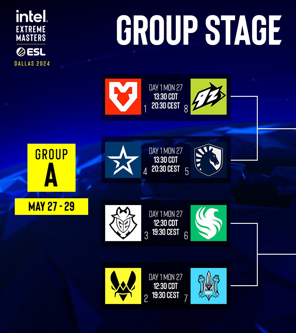 The tournament has a double-elimination format with each group’s opening matches being best-of-one series. All remaining matches are best-of-three. The top three teams advance to the tournament playoffs where the group stage winners advance directly to the semifinals. The winner of this event will qualify directly for IEM Cologne 2024 as well as a substantial amount of $100,000 in prize money.