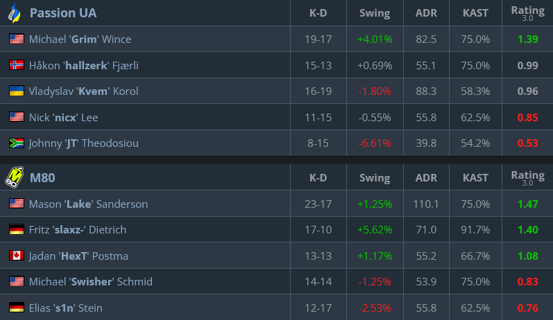On the CT side, Passion UA won the pistols and then just sealed the deal — to bring the match versus M80 for the Major life to the decisive map.