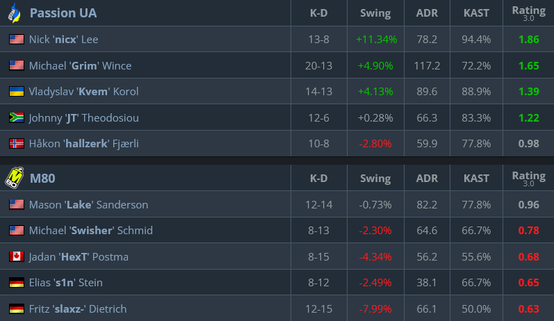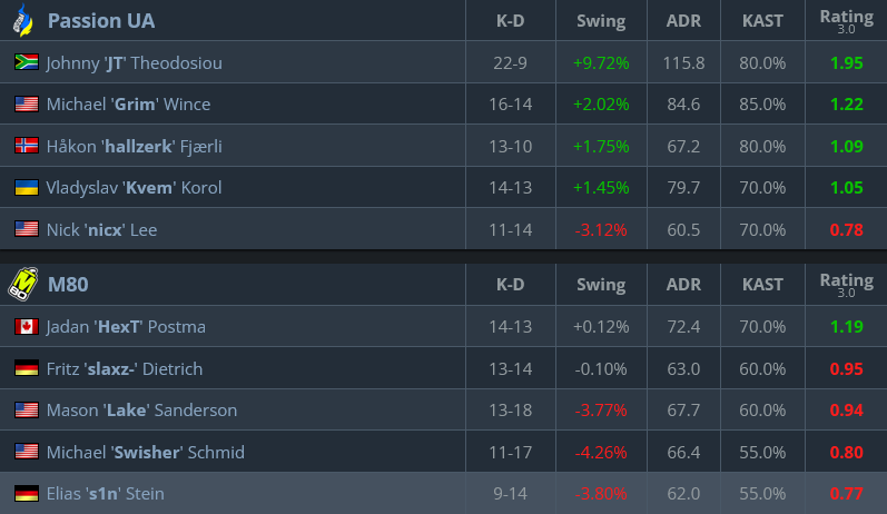 When it came to switching sides, we could see that the threat of playing as Ts is not that awful for Passion. Still, it isn’t though yet. M80 had a good start as CTs, but then they got smashed by the awakened power of PUA. Specifically, Vladyslav “Kvem” Korol woke up to the play: he had trouble adapting to the Major’s pressure.