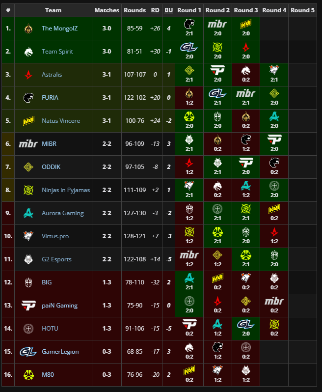 - 7am: MongolZ 2-0 MIBR (1-0) | VP 2-1 M80 (0-1)