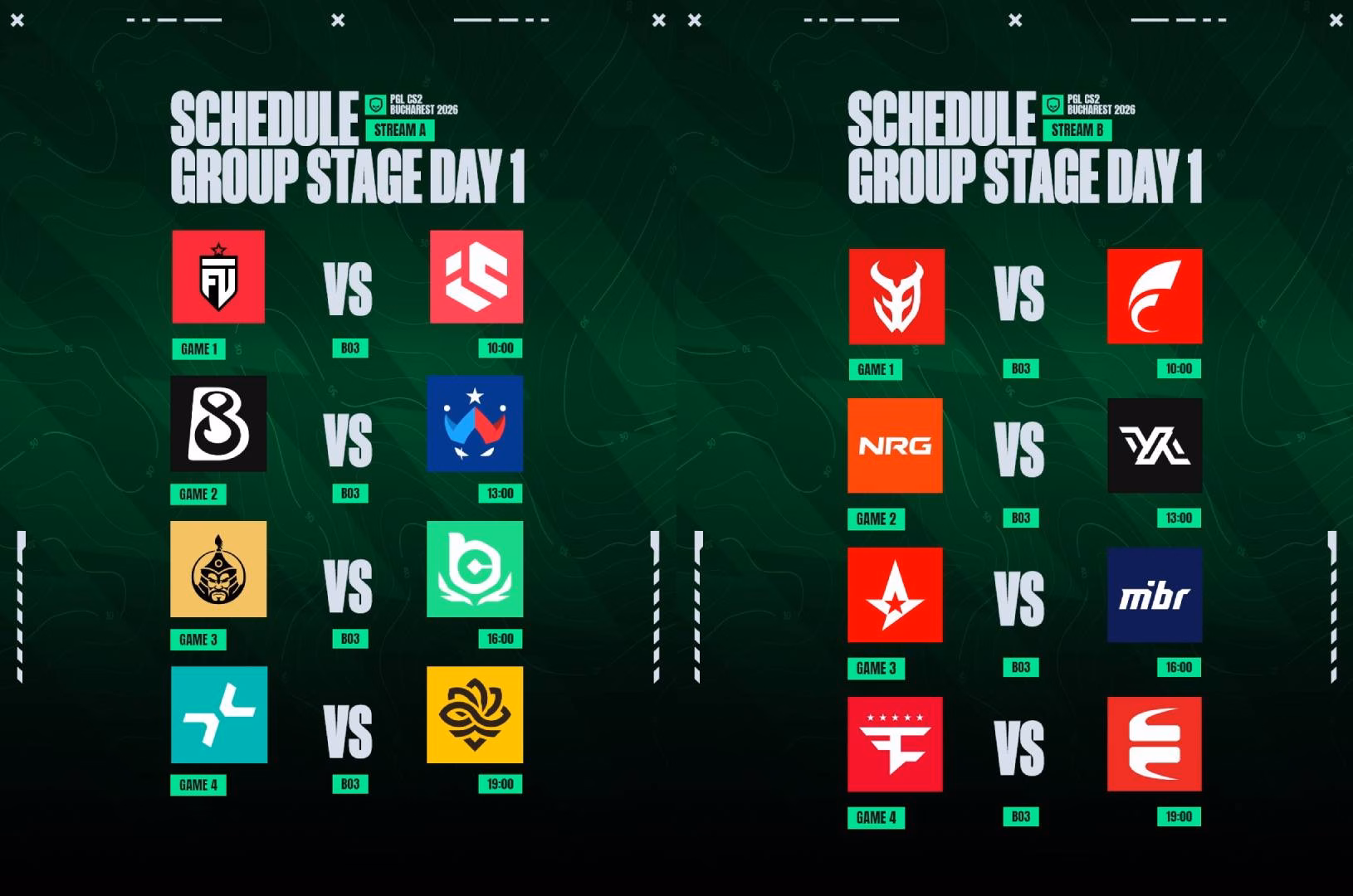 PGL Bucharest 2026 starts with the Swiss Stage matches. This tournament phase goes on from April 4 to April 8. Only eight out of 16 teams can make it to the playoffs and battle for the sweet $200,000 for the winners.