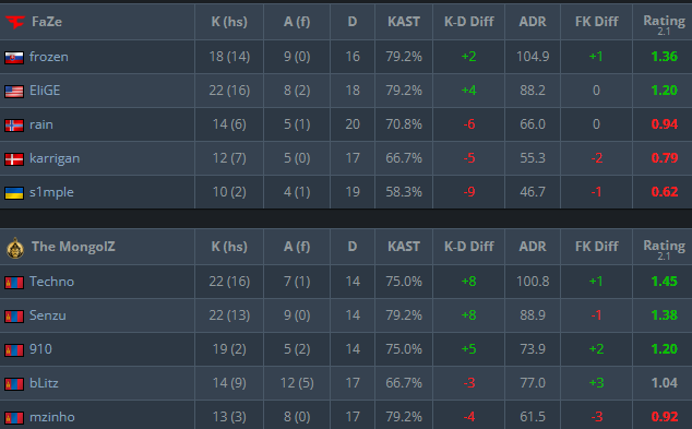 Unfortunately for FaZe, having been unable to make a definitive stand against MongolZ, they eventually were left out to dry. It was a blistering performance from the Mongolian squad, constantly turning around what seemed like dire situations and holding off the attacks of Finn “karrigan” Andersen, s1mple, Jonathan “EliGE” Jablonowski, and the rest of the FaZe squad. With a 13-11 scoreline, MongolZ secured Anubis and the series.