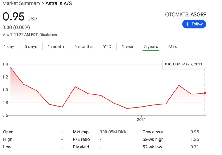 That being said, while lower than their initial IPO (Initial Public Offering) release, they are beginning to bounce back. As of writing, ASGRF is currently trading at a price of $0.95 USD per share. Thus, the stock is now trading $0.25 USD per share higher than their lowest point in 2020.