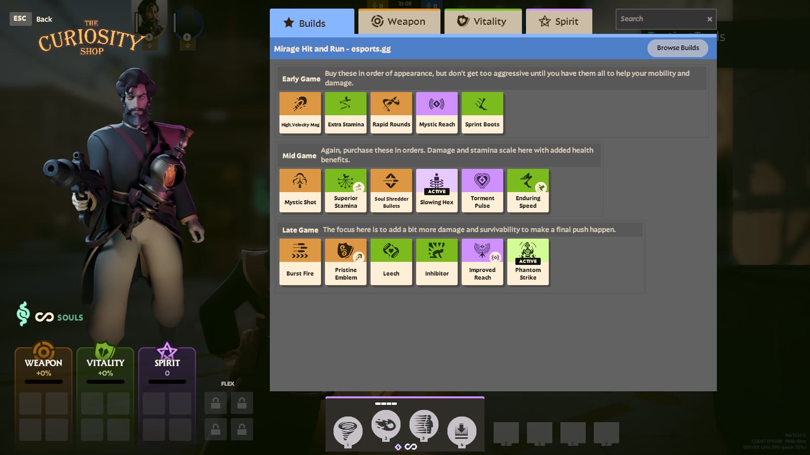 The Mirage build in Deadlock focuses on his main weapon, his movement speed, and his ability to get in and out of fights quickly. It’s all about chipping away at enemy health and causing them to make a mistake while you stay alive.