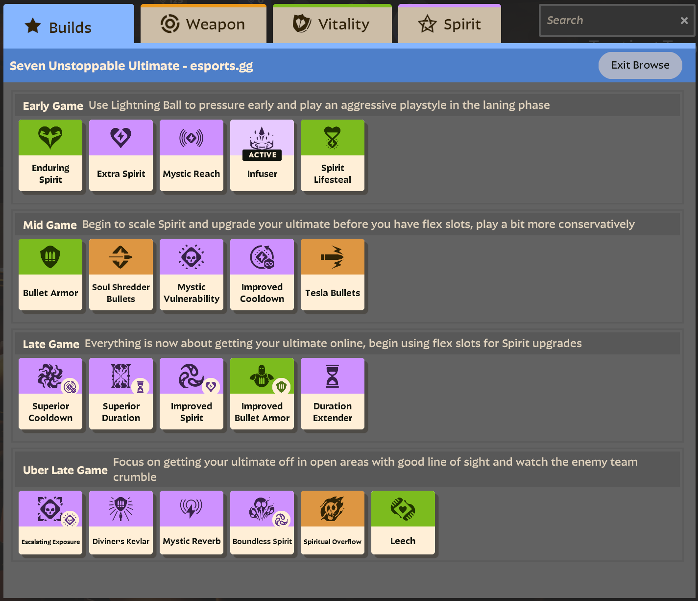 Seven’s Storm Cloud is what this build is centered around, but all of these abilities will benefit from the Spirit items you can get from the shop.