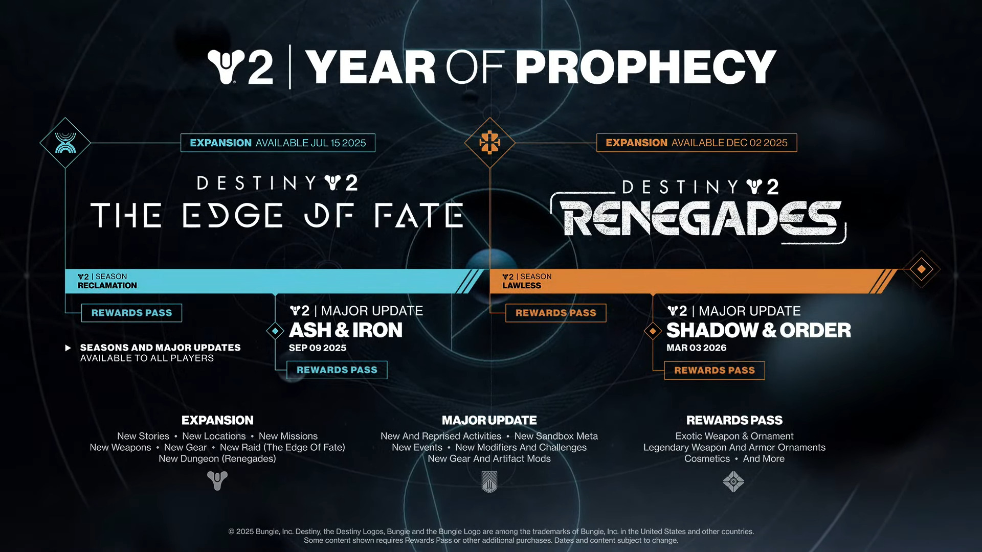 But that’s just barely scratching the surface of what’s coming to Destiny 2 in 2025 and beyond. Bungie has name-dropped four new paid expansions and two free Major Updates that are launching in the Year of Prophecy.