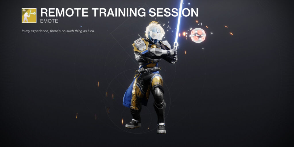 Finally, we’ve got the emotes — all of which tap into the flavor and story of Star Wars. The Remote Training Session emote mimics Luke’s training scene with Obi-Wan Kenobi in A New Hope and is the only solo emote available.