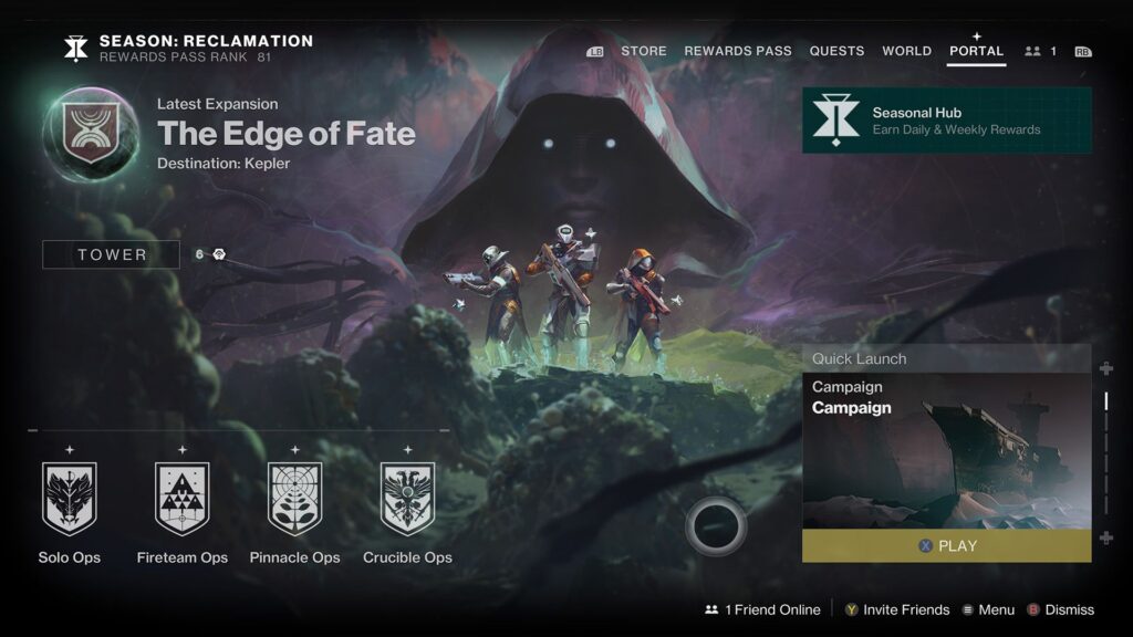 The Edge of Fate makes plenty of changes to the core game systems. For instance, the Portal is a new activity selection screen that allows players to dive into the latest campaign mission, hop into the Tower, or try one of the new activities.