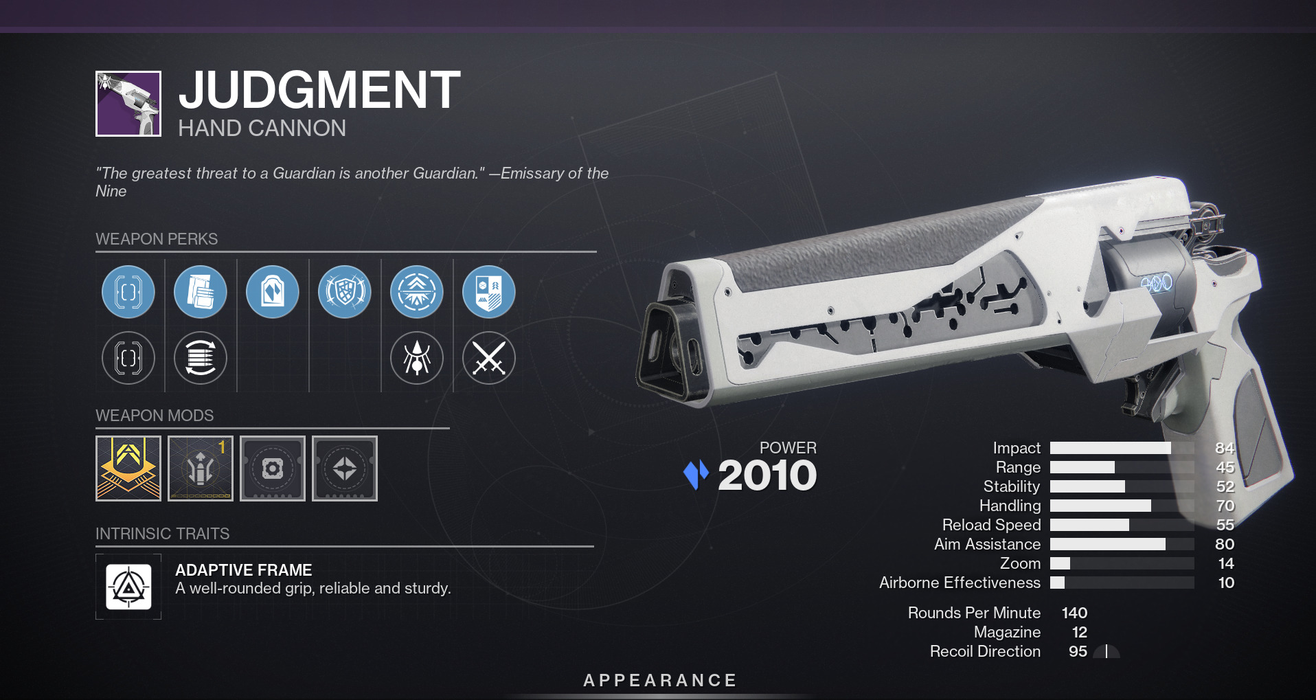 140 RPM hand cannons are some of the most sought after weapons in Destiny 2, with Rite of the Nine’s reprisal of Judgment already at the top of many guardians’ wish lists. The Judgment god rolls for PvE and PvP are both very strong and worth your time grinding dungeons to get them.