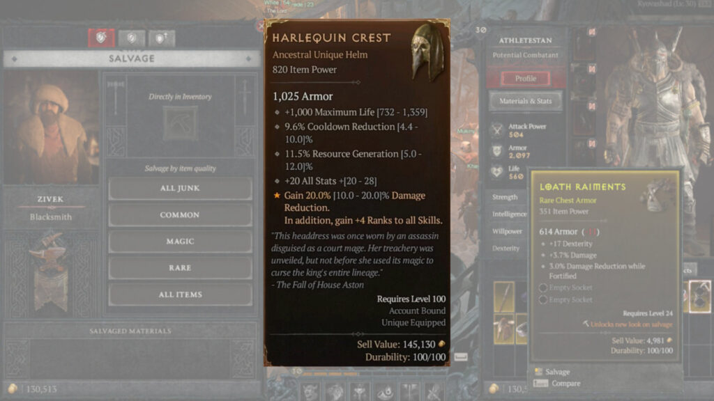 The Harlequin Crest is a Unique Item in Diablo 4, you can find out about the different rarities in Diablo 4 in the article linked above. This item boasts some of the strongest statistics of any item in the game and this is just the base level, if players are lucky they can find the Sacred or Anscetral versions if they have gotten that far into the game.