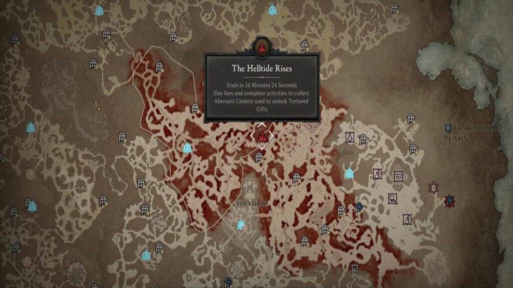 Helltide Events are new end-game levels that provides players with the ultimate challenge. During Helltide Events, a section of the map will be covered in red. Players will have a set amount of time to clear out the hordes of enemies in order to complete the challege. During this time, legendary and Unique items can drop amongst other end-game rewards.