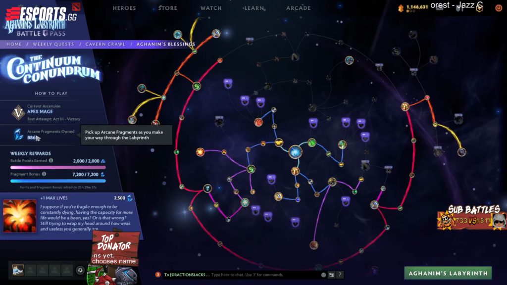 Even if you can’t make it to the Final Boss, there’s a point to playing without getting to the last Boss. Aghanim’s Labyrinth is a roguelike, which means every time you play, you get stronger. You get Shards every game you play, which you can spend on permanent buffs from Aghanim’s Blessing. There are many options, but your first goal should be to unlock all the big inner circles.