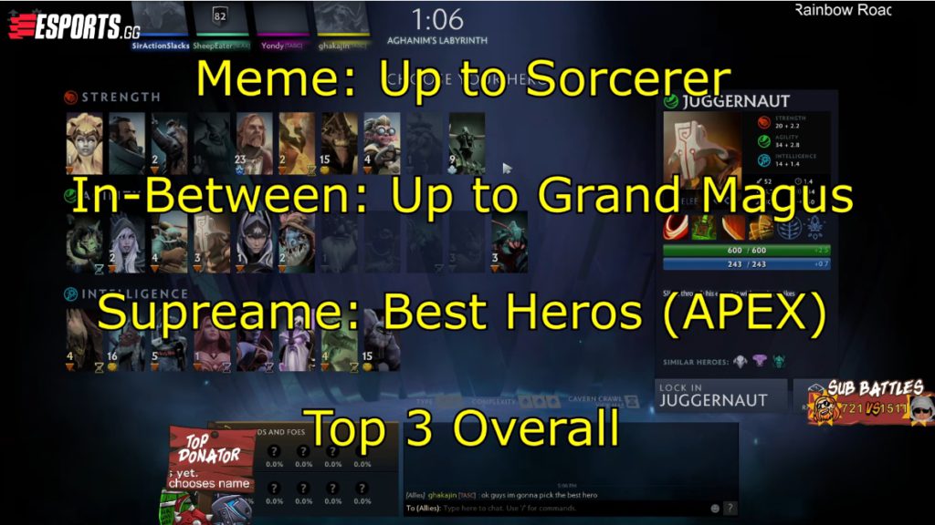 Take a look at the first category of heroes, Aghanim Labyrinth: Meme Heroes. The first category in heroes might be labeled D-tier but instead, they’ve been crowned Meme Heroes! These are the least favorable heroes to pick, but if you can make them work beyond Sorcerer then good on you!