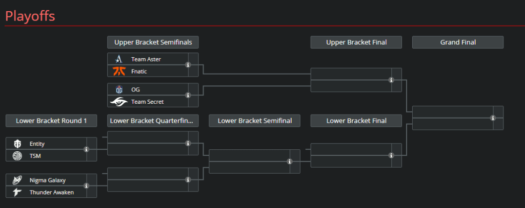 - Group A: Thunder Awaken, Talon Esports, Alliance, Team Secret, Team Aster, Entity