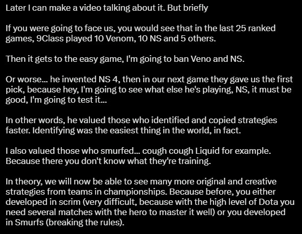 In the post, he explains his point of view, before mentioning Team Liquid in a comment about “smurfing” in Dota 2.