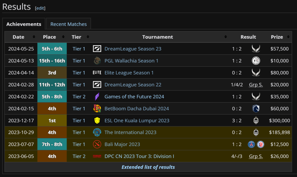 Since then, they participated in most tier 1 tournaments, including BetBoom Dacha Dubai 2024 and DreamLeague Season 22. Sometimes they performed very well, they could finish in third or fourth place. But other times they might leave early in the first round.