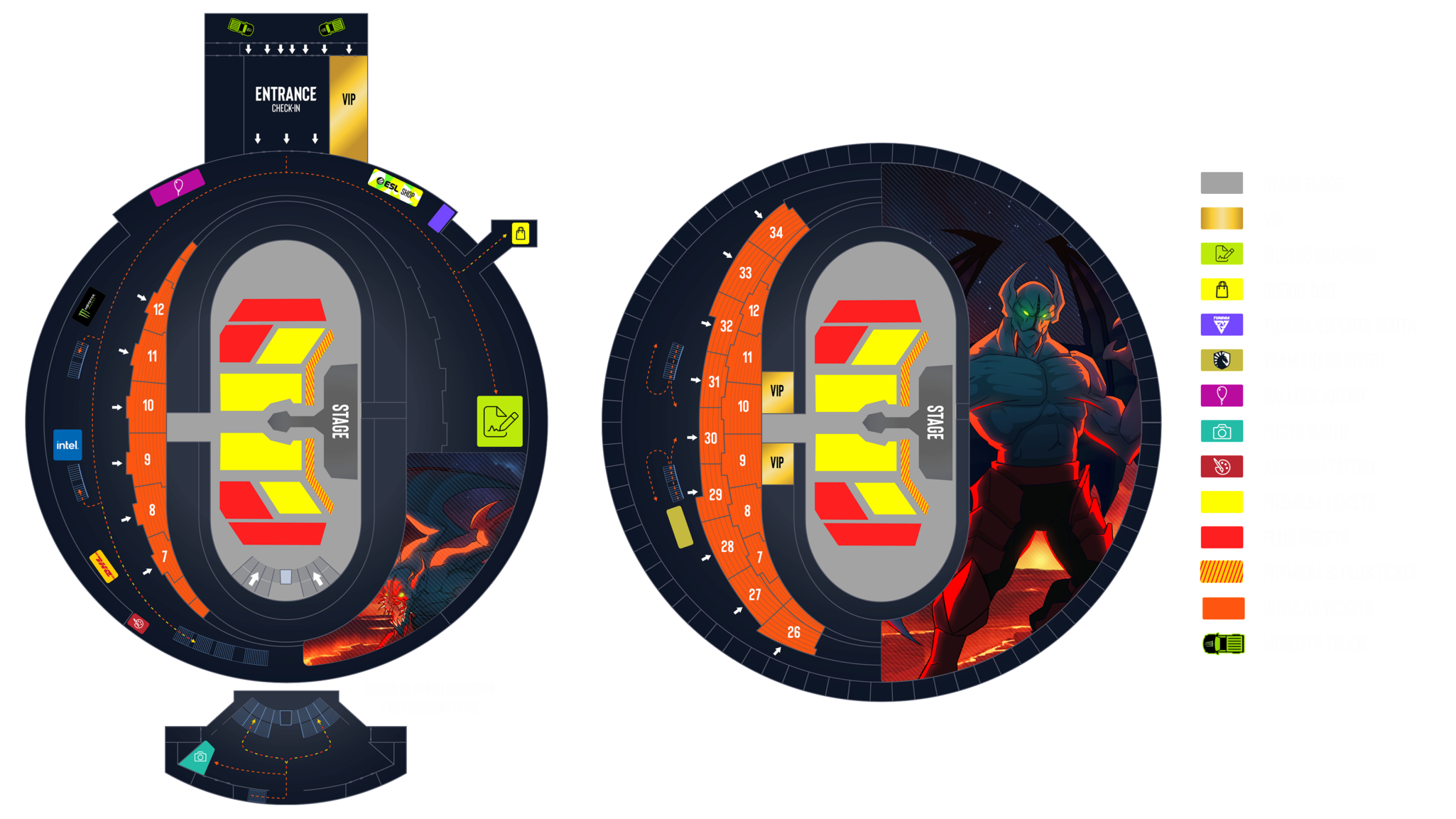 Below is a map of the ESL One Berlin Major arena, generously supplied by ESL. Click to Enlarge! (best viewed in Dark Mode)