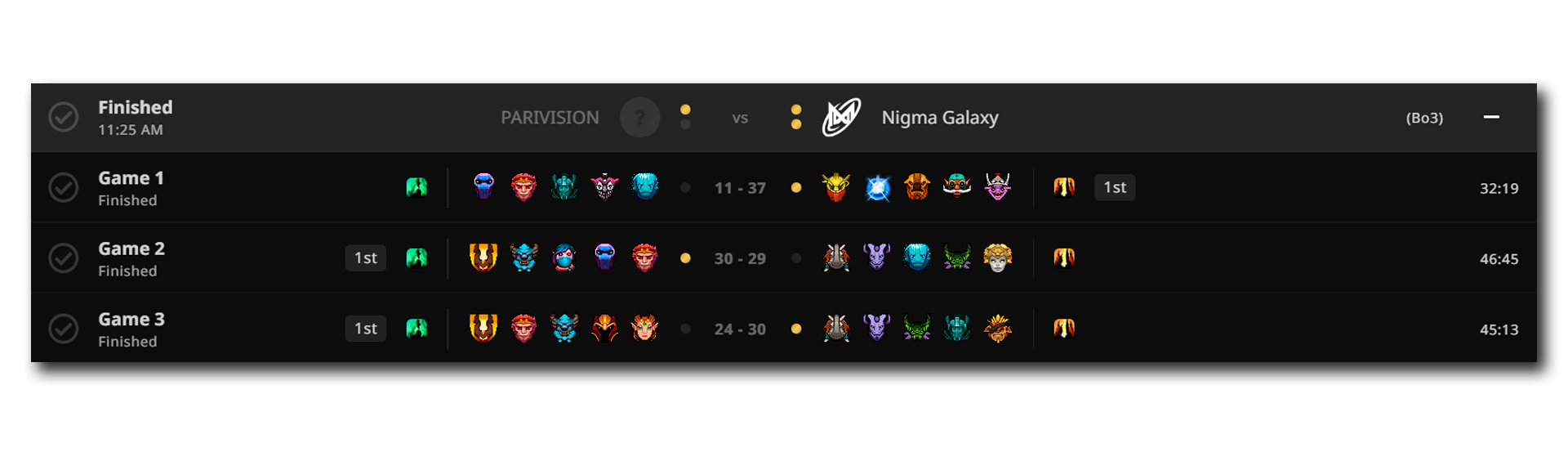 On the other hand, PARIVISION won the ESL One Bangkok, and placed Top 3 at the past FISSURE Playground #1. As a team, Nigma never found the success people were hoping for.