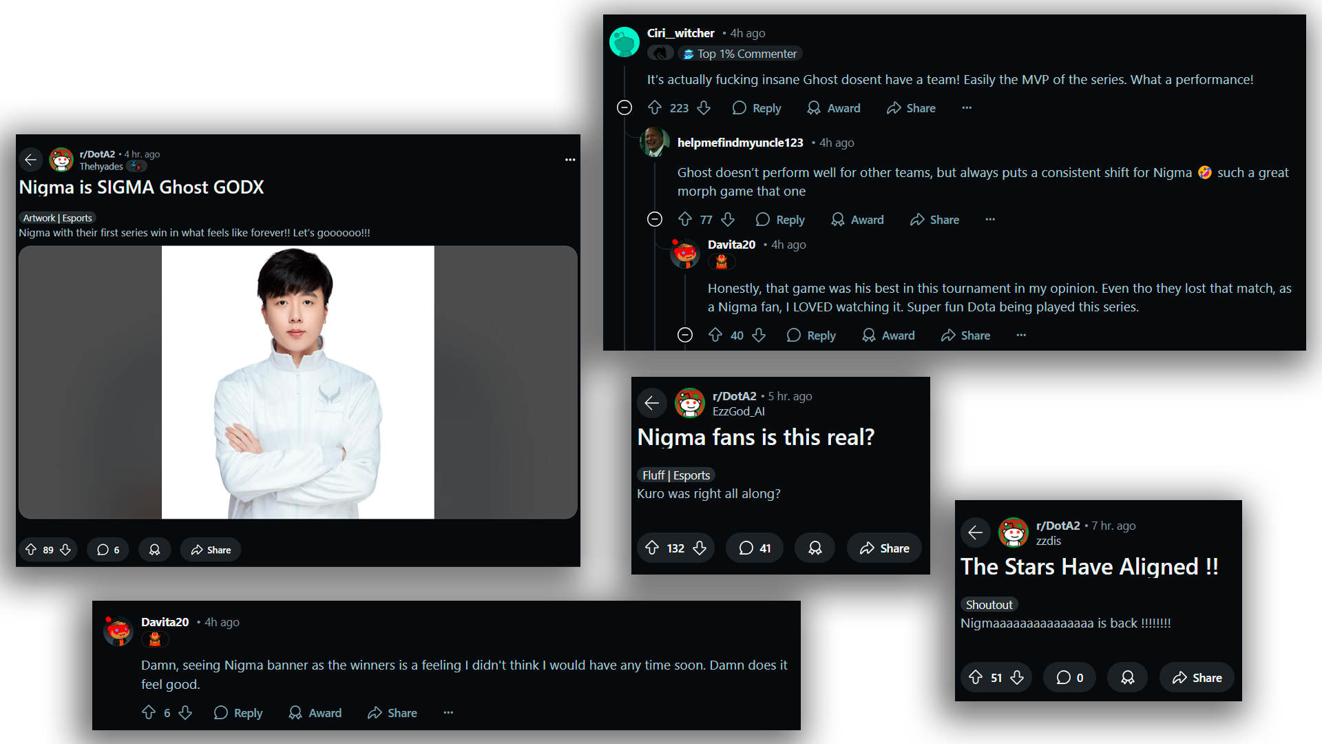Many agree that Ghost is the reason why Nigma is looking so dominant in the BLAST Slam II, not only beating PARIVISION, but also Team Falcons and Xtreme Gaming during Group Stage. The Dota 2 sub-reddit is full of positive comments for the team, despite being harshly criticized for years.