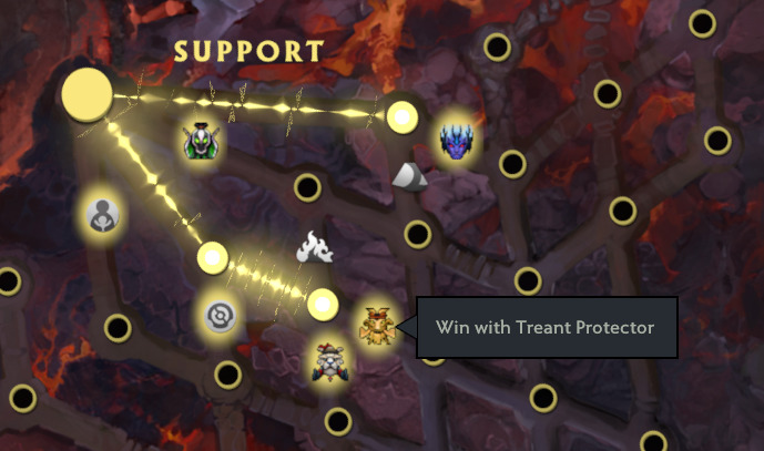 To make progress, you have to win with a specific hero at different checkpoints. For example, this checkpoint requires you to win a game with Treant Protector. By doing so, you’ll advance to the next step.