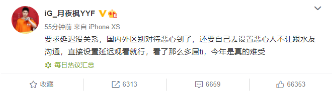 I’m fine with the mandatory delay, but I’m disgusted by the differential treatment. We are required to apply a 15 minute delay on-stream that stops our interaction with viewers, why not just impose an in-game delay on client? I’ve watched so many TIs, this year is so suffering.