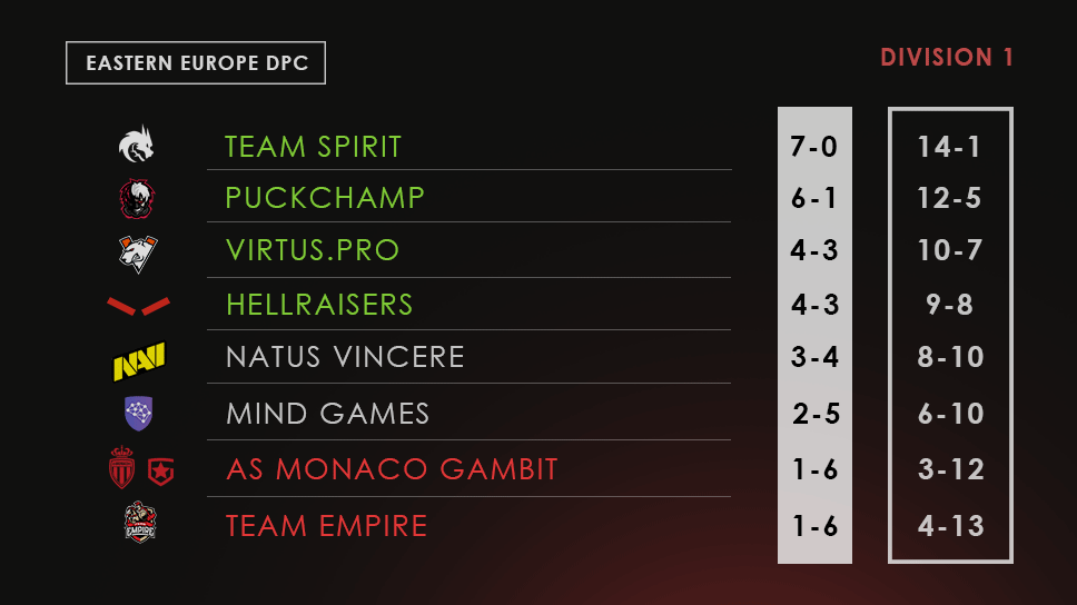 Qualified to Regional Finals: Team Spirit, PuckChamp, Virtus.Pro, HellRaisers