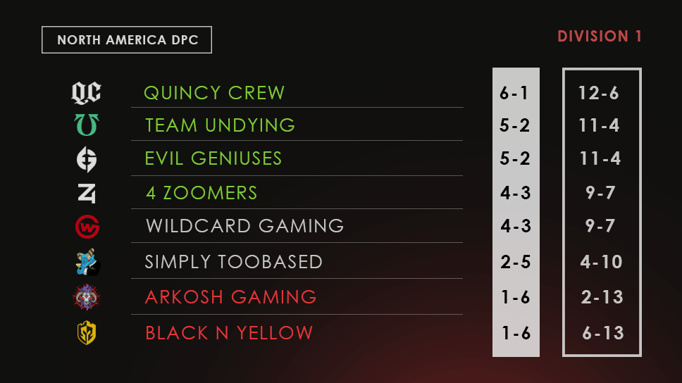 Qualified to Regional Finals: Quincy Crew, Undying, Evil Geniuses, 4 Zoomers
