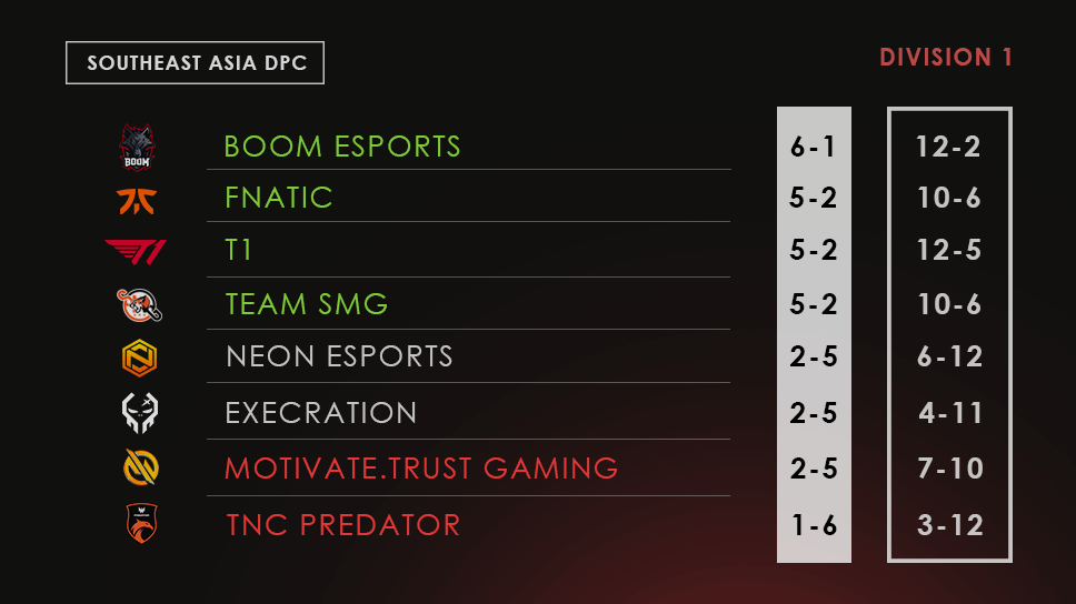 An odd view is TNC Predator, once the strongest team of the region, sitting in the relegation zone. They haven’t had the best of performances after the roster rebuild and they will play from the lower division starting next season. Motivate.Trust Gaming, after an unlucky tiebreaker series against Execration, will also drop to Division II.