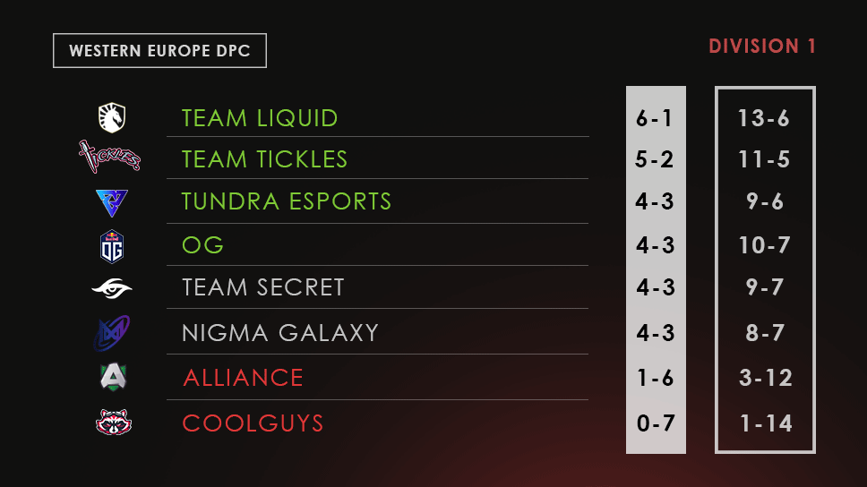 Iconic names; Team Secret and Nigma Galaxy didn’t have a good season and Alliance will, unfortunately, face relegation to the lower division.