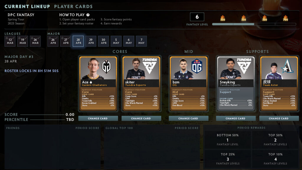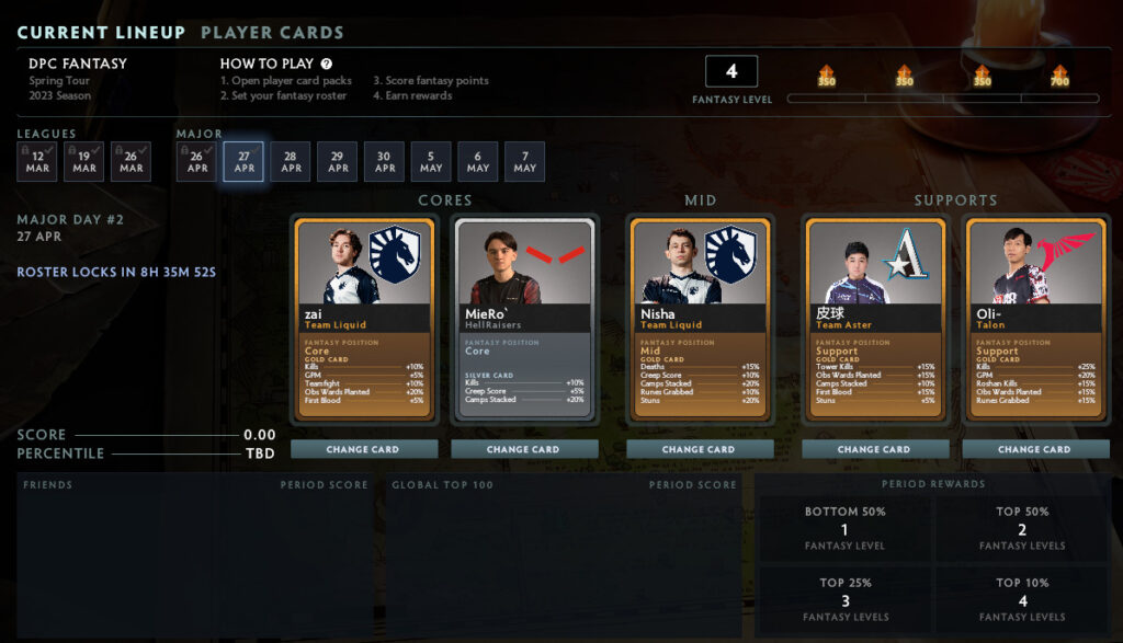 For the Berlin Major, the DPC Fantasy season has continued from the Spring Tour. As a result, any cards you’ve acquired over the season for the three League periods will work in the Berlin Major Fantasy.