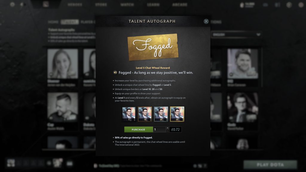 As per the details on the website, the Autograph, which can be displayed on your profile, is available permanently. The voiceline will last until The International 2022. And, 50% of the Talent Autographs sales go to the talent! Do remember you don’t have to choose talent from only the English talent pool, voice lines have also been added for the Chinese, Spanish, Portuguese and Russian talent as well.
