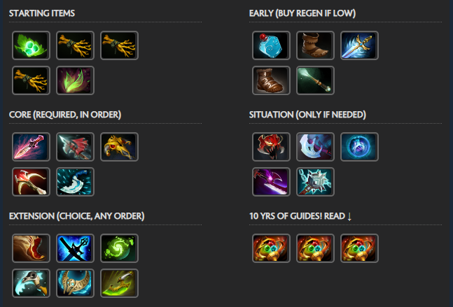 Here is a full item guide by Torte de Lini, a popular and reliable guide maker for Dota 2 players.