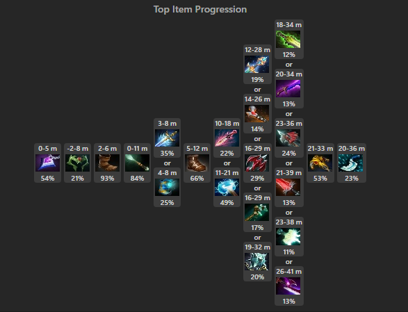 Carry players are not doing very well with Muerta as they mostly suffer a below 50% win rate this week. PSG.LGD’s shiro has been playing plenty of Muerta with a 45.5% win rate in 11 games. He doesn’t experiment much with Muerta’s build and usually stick with the usual item choices.