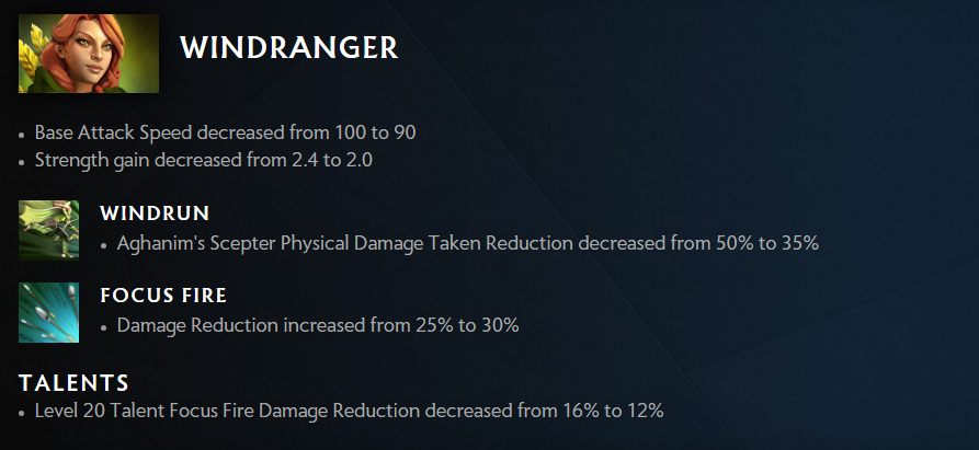 Windranger has absolutely stomped pubs after the new update. However, Patch 7.33d attempts to remove her dominance in Dota 2. Windranger’s Base Attack Speed and Strength gain is decreased. Her Windrun’s Aghanim’s Scepter buff, which reduces physical damage taken, is notched down from 50% to 35%. However, Focus Fire receives a slight buff to its damage reduction.