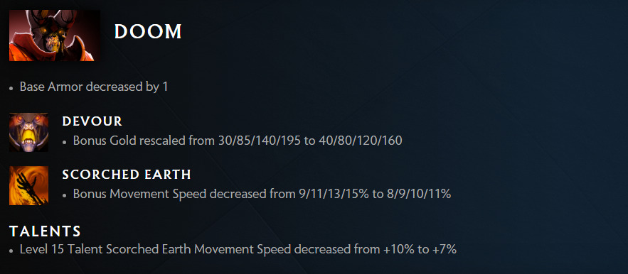 Doom has been hovering the meta for a long time and nothing seemed strong enough to give this hero a setback. But in Patch 7.33d, Dota 2 rescaled his Devour bonus gold and reduced his bonus movement speed for Scorched Earth.