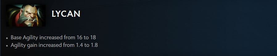 Lycan is another hero that flew pretty under the radar at TI12. However, the 7.34e patch is trying to mend that. With additional base agility and agility gain increased, Lycan, the universal hero, gets significantly scarier. Which is pretty fitting given he’s supposed to be the big bad wolf of Dota 2. His base agility is now at 18, which is on par with Pangolier and his agility gain is at 1.8 which is on par with Dawnbreaker.