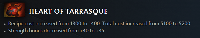 It’s no surprise that the Blademail and Heart combination would be changed somehow in the new patch. The community expected some tweaks to the first half of the combination, Blademail. However, in reality, Valve or Icefrog, merely increased the total cost by 100 gold and decreased the strength gain. So now, Heart of Tarrasque costs 5200 gold and provides 35 strength rather than 40, on top of its pre-existing regenerative abilities.