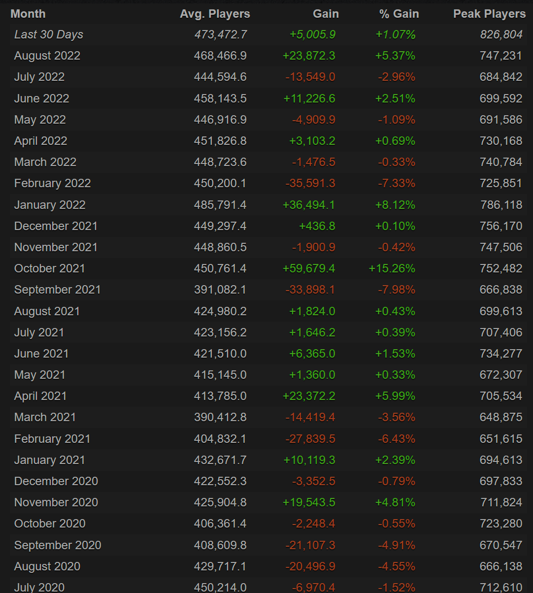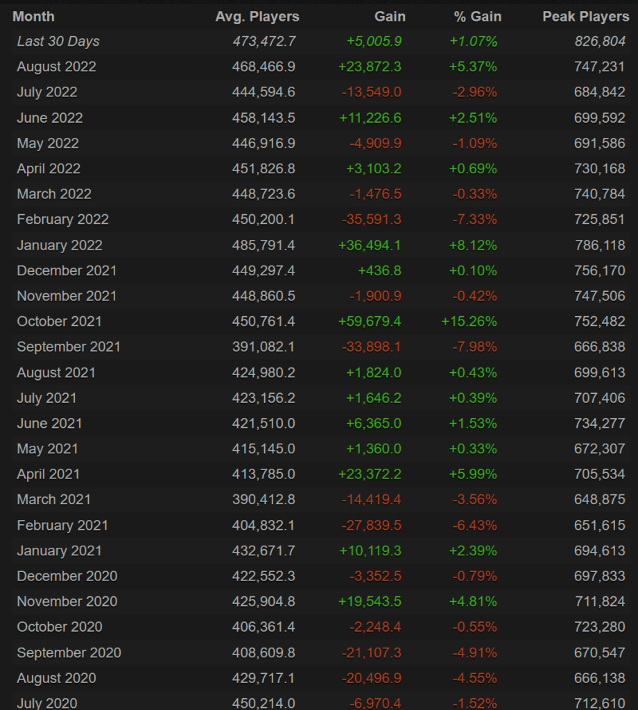 The number of concurrent players nearly a year ago, in August 2021, was around 700,000. There has been a consistent increase in number of players over the past few months, but the biggest change came in August where Dota 2 saw a 5.37% increase in the number of concurrent players.