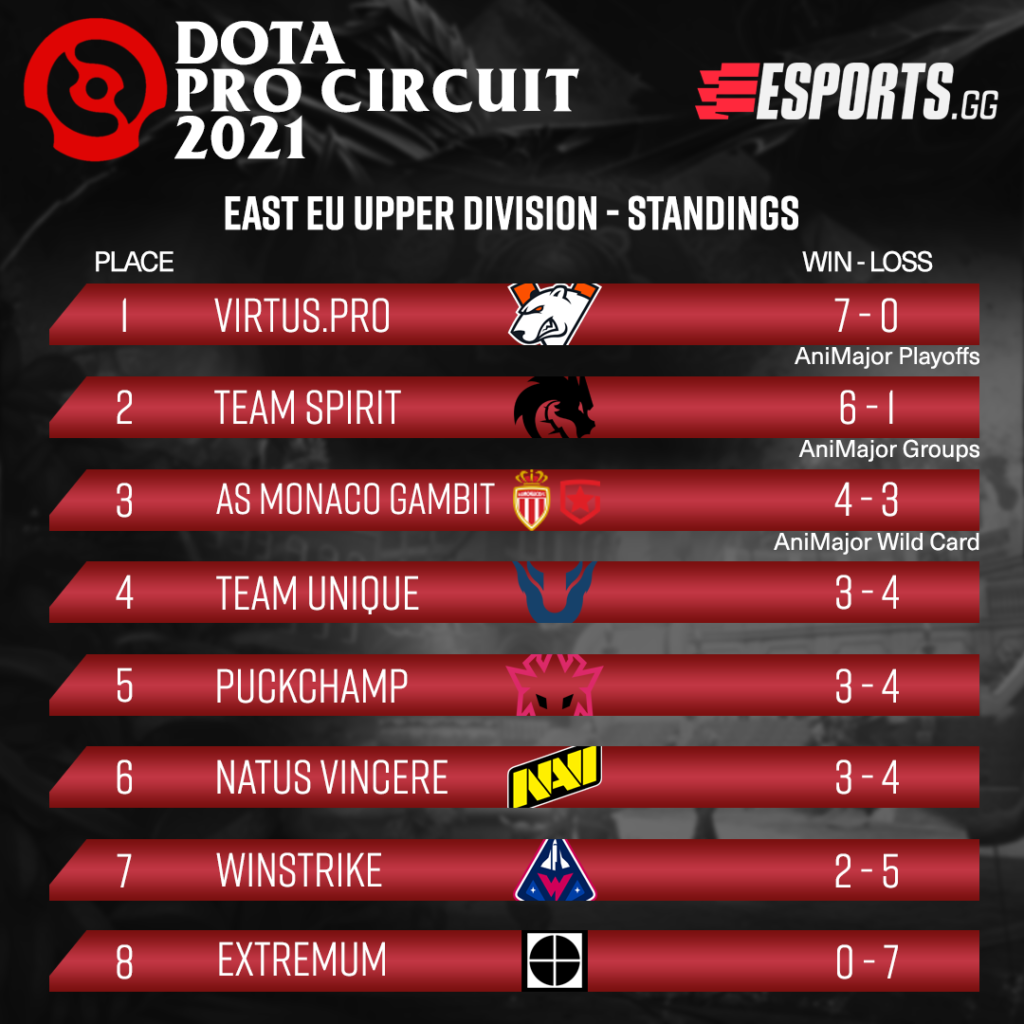 Meanwhile, Virtus.Pro completed yet another undefeated season highlighting its dominance in the region. The team was closely followed by Team Spirit whose only loss came against Virtus.Pro. AS Monaco Gambit finishes in third place and will be the only representative for Eastern Europe in the Wild Card stage.