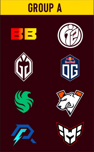 Group A has BetBoom Team, G2.iG, Gaimin Gladiators, OG, Team Falcons, Virtus.pro, Azure Ray, and Heroic. Meanwhile Group B has Team Spirit, Xtreme Gaming, Team Liquid, Tundra Esports, 1win, Team Secret, Shopify Rebellion, and Aurora.
