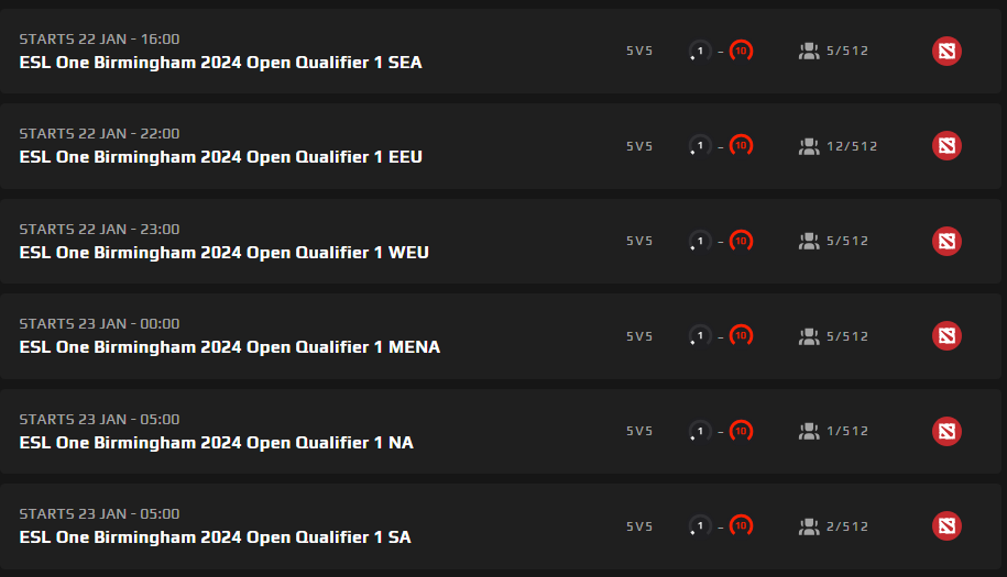 There will be two rounds of Open Qualifiers for ESL One Birmingham. One will take place on January 22 to 23 and the second one follows right after on January 24 to 25.
