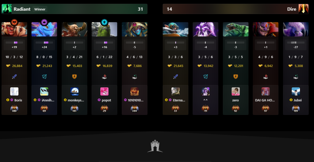 Unfortunately during game 1, the theory fell short. The game was very back and fourth with Envy outframing Boris’ PL throughout the entire game. However, with the lead that they have, Black N Yellow took a long fight at the Rosh pit, which PL, Warlock and Tiny all thrive in. Unfortunately, even with all the farm that Envy had, it wasn’t enough to survive the onslaught of PL illusions, Tiny burst combo’s and Warlock spells being thrown at them.