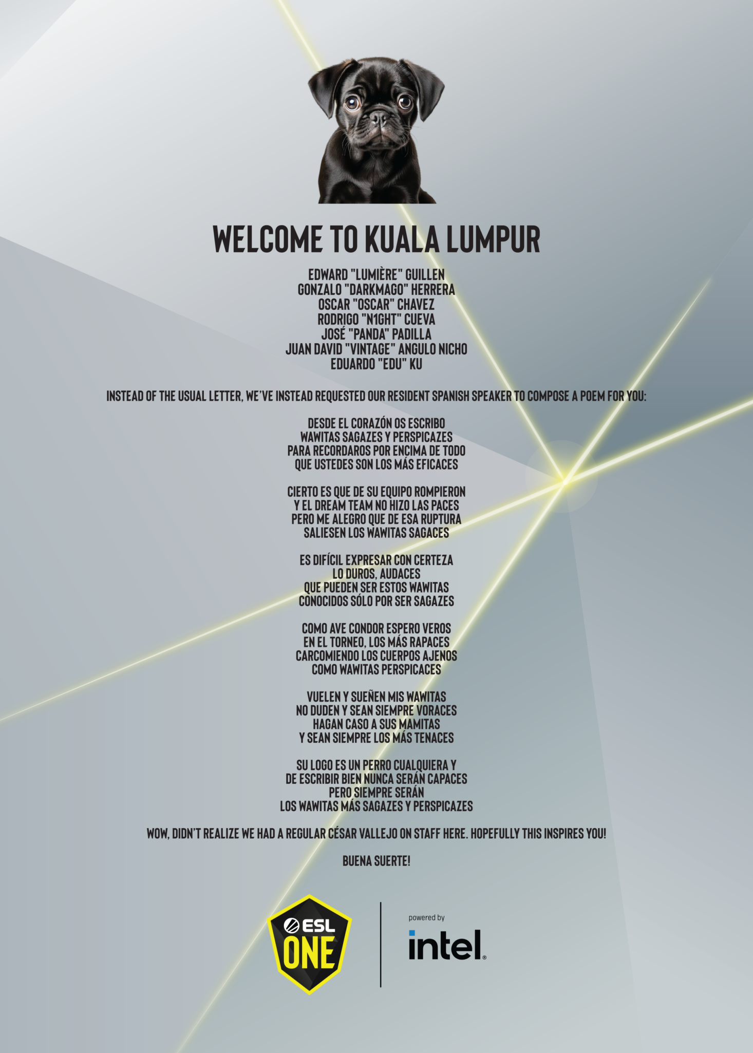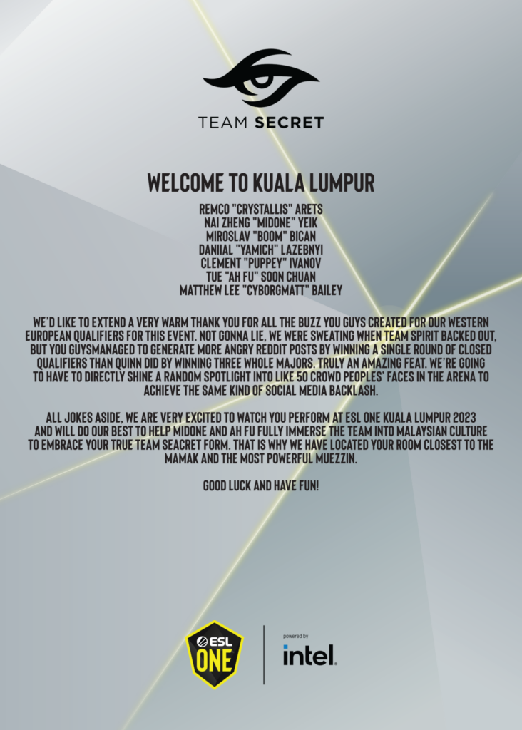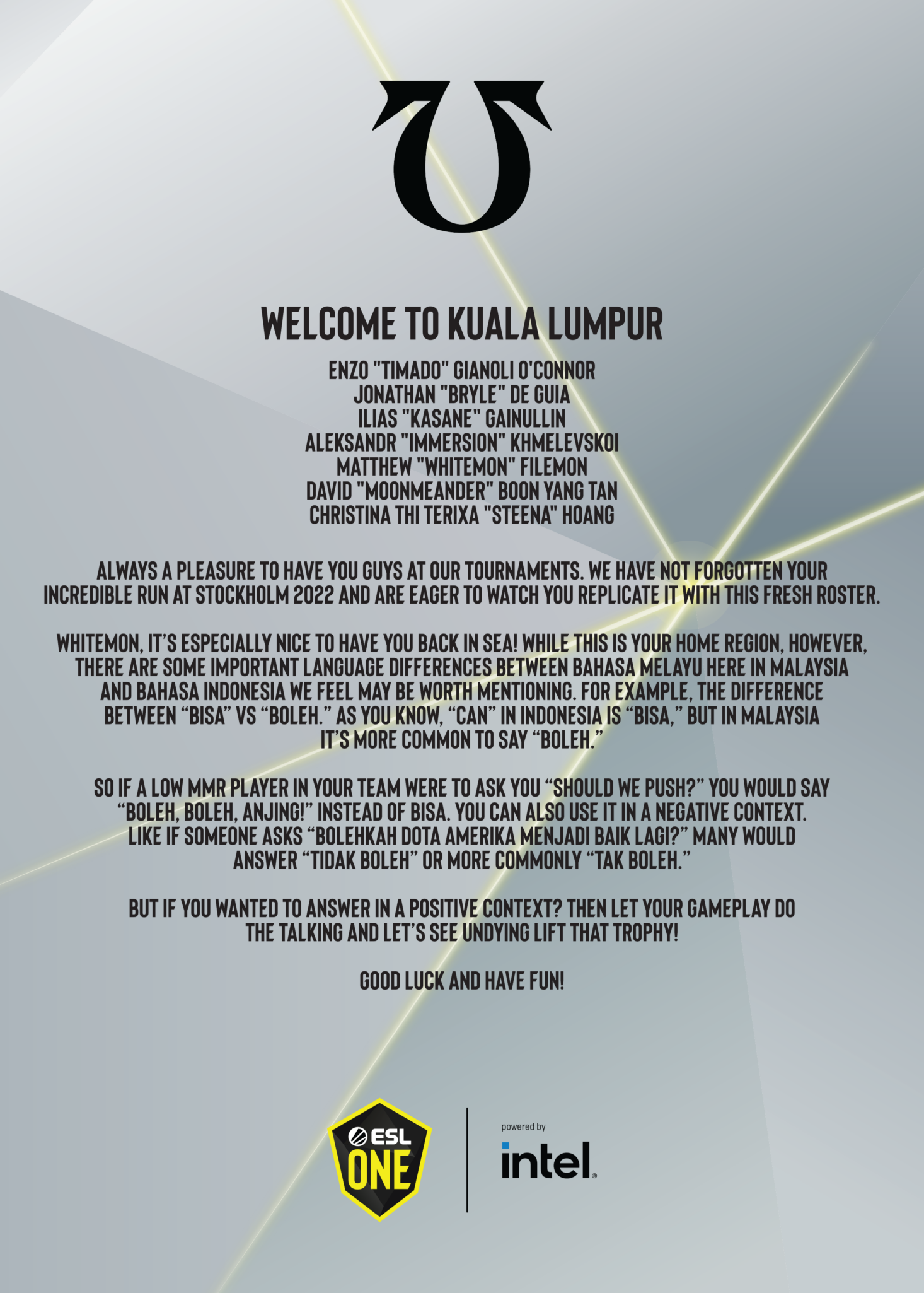 Fresh memes and inside jokes from the teams you love: We've compiled all the Welcome Letters from ESL ONE Kuala Lumpur!