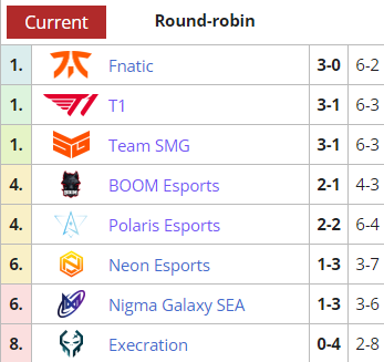 T1 has suffered a loss in the hands of Polaris Esports and Team SMG lost a series to T1. BOOM Esports, on the other hand, faced an unfortunate blackout on their matchday against NGX.SEA, which forced them to forfeit the series.