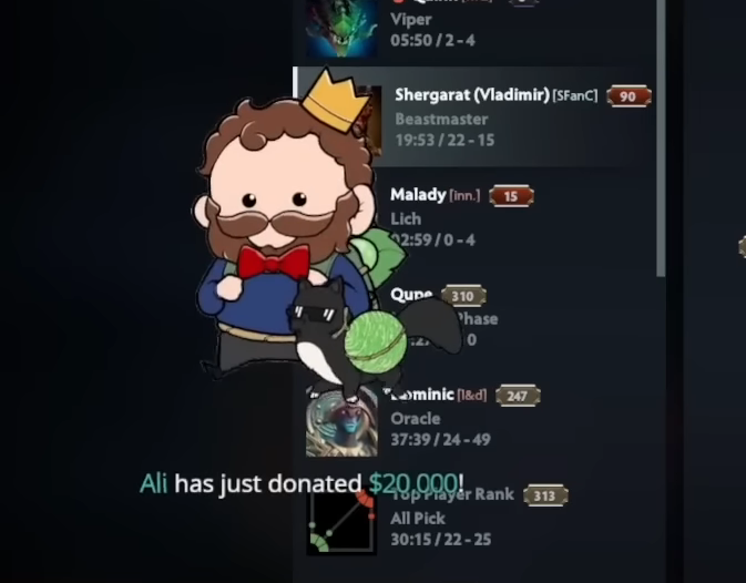 The Dota 2 community has often talked about this rich, enigmatic figure that they label the “Saudi Prince”. This user called “Ali” might just be the same person especially because Ali is a name of Arabic origin.