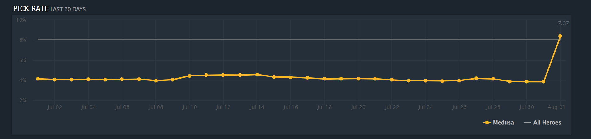 However, the Dota 2 player base has taken a keen liking to Medusa post 7.37. Within hours of the patch release, the hero has seen an uptick in pick rate.