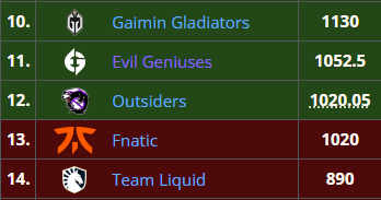 While the Direct Invites list seems pretty clean and clear, the official DPC site is causing some massive confusion. According to the DPC site, Fnatic sits at the 12th rank instead of Outsiders. This is apparently due to a different rounding down system and because of that, the ranking on Liquipedia and the DPC site contradicts.
