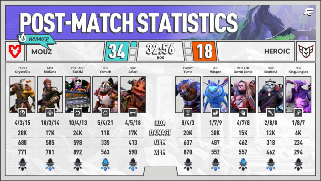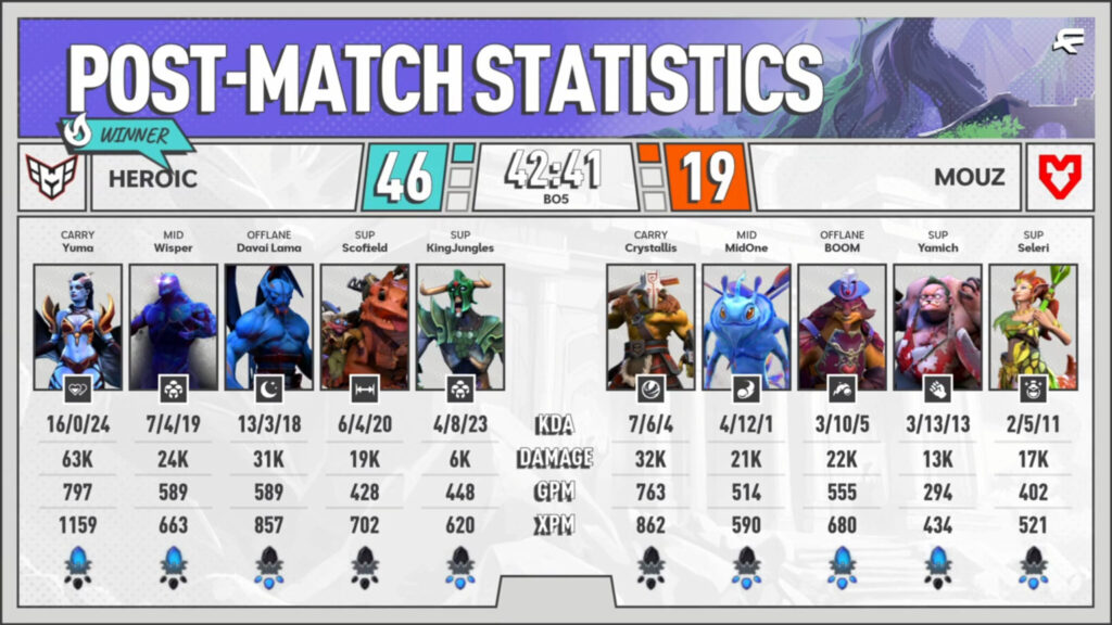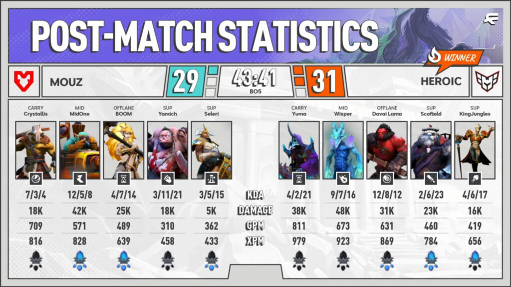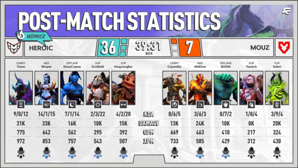 HEROIC’s specialty is the draft flexibility. However, in this game, the Pudge wasn’t the surprise they needed. None of their picks were able to make space for “Yuma” Langlet’s Ursa, and in just over thirty minutes, the GG was called.