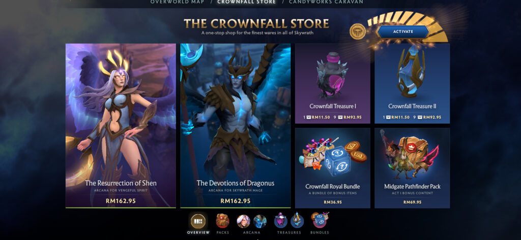 - On the Crownfall Store tab, click the “ACTIVATE” button on the top-right of your screen.