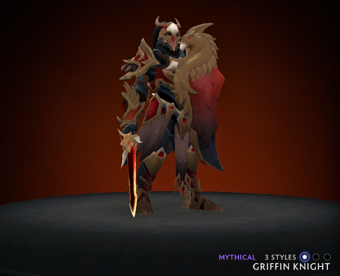 The Dragon Knight “Griffin Knight” looks absolutely amazing! It decorates Dragon Knight in new armor with different colors depending on which Facet you choose. If you choose the “Fire Dragon” Facet, your Dragon Knight will be in red theme. The “Corrosive Dragon” Facet will color your Dragon Knight green, meanwhile the “Frost Dragon” Facet colors the hero blue.